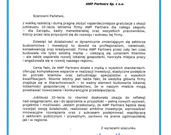 Z tej okazji otrzymaliśmy piękne gratulacje od Prezydenta Miasta Starachowice – Marka Materka. To dla nas wielki zaszczyt i dowód, że nasze starania mają realny wpływ na rozwój regionu.